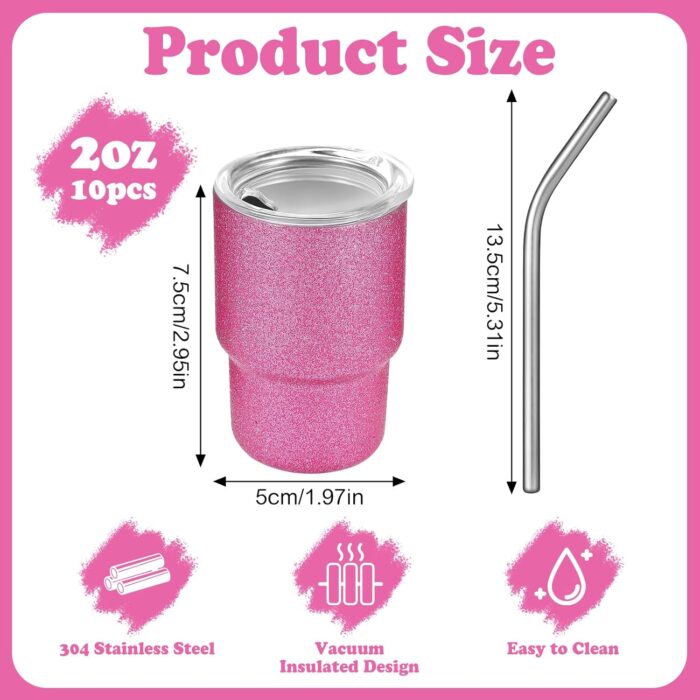 - 【Shot Glass Tumbler Set】You will receive 10 pcs mini tumbler shot glasses with lids and 10 pcs straws, each tumbler shot glass with a capacity of 2oz and available in a set of 10 mixed colors.