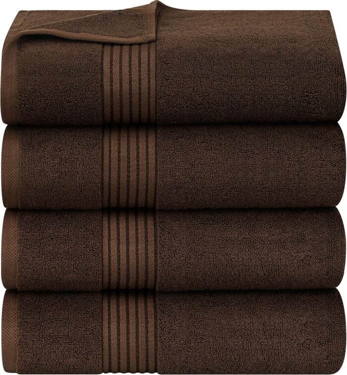 4 Pack Bath Towels Set, (27 x 54 Inches) 100% Ring Spun Cotton, Quick Dry, Highly Absorbent, Soft Feel Towels, Perfect for Daily Use (Brown)