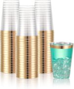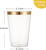 72 Pack Gold Plastic Cups, 12OZ Clear Plastic Cups with Gold Rim, Disposable Cups Perfect for Parties, Wedding and Birthday