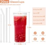 - 🥤 Size and Capacity// This glass cup measures 3.3 inches in width, 8.9 inches in height, and boasts a generous 20 oz capacity. Each package includes two cups, four straws, and a straw brush for effortless cleaning effortless cleaning and straw brush for convenient cleaning