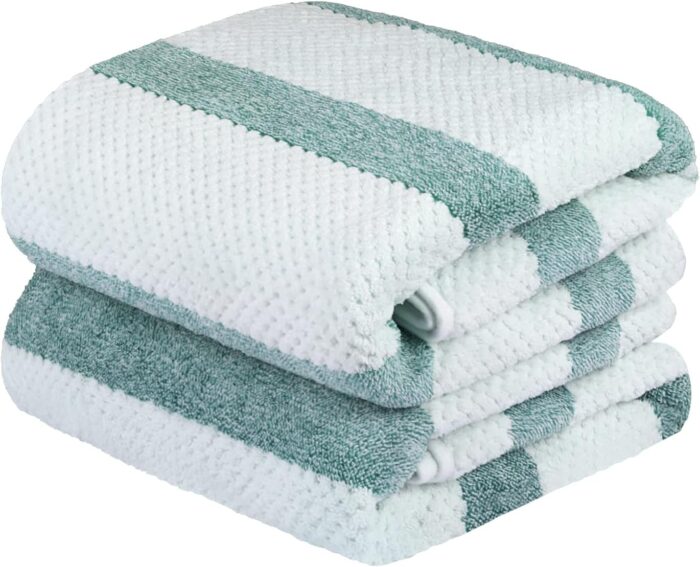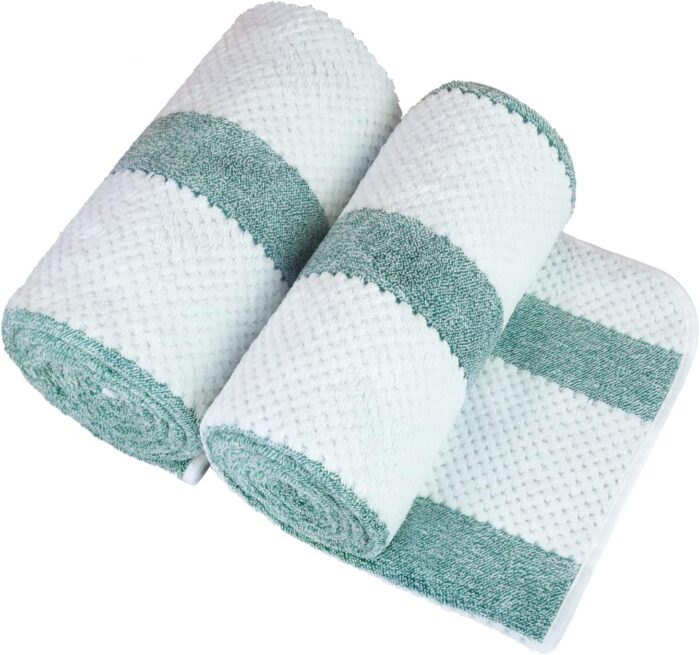 Microfiber Bath Towels, Bath Towel 2 Pack(30″ x 60″), Oversized, Soft, Super Absorbent and t Drying, Multipurpose Use for Sports, Fitness, Yoga, Waffle Stripe Green